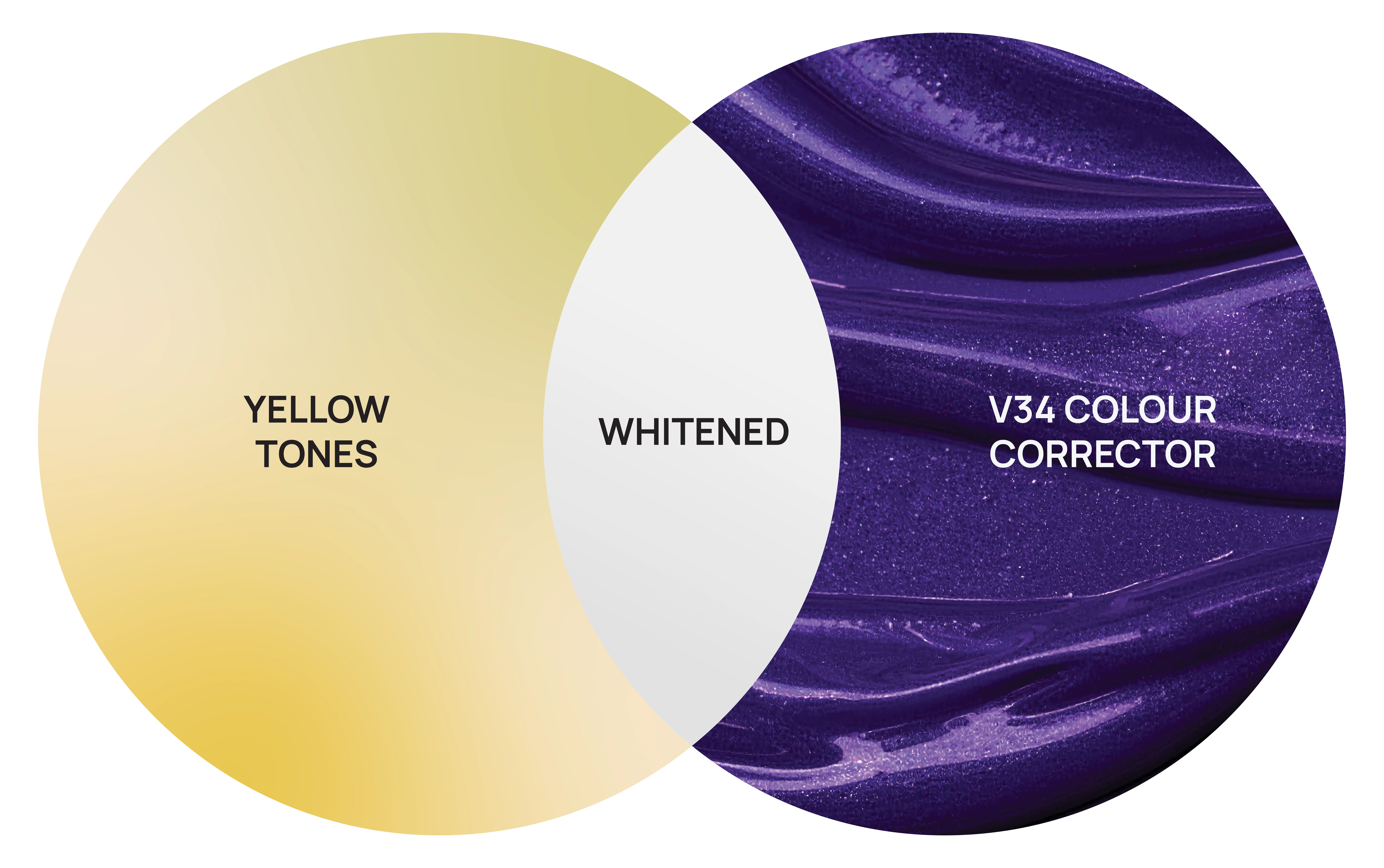 V34 Colour Corrector Technology is built on the principle of colour balance. On the colour wheel, violet sits opposite yellow, allowing it to effectively neutralize yellow tones on the tooth surface. This process delivers an immediate brightening effect without the need for harsh bleaches or abrasive methods